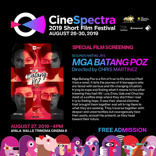 CineSpectra 2019 will also hold a special free film screening of the iWant series Mga Batang Poz written by Segundo Matias Jr. and directed by Chris Martinez which follows the story of four adolescents living with HIV on August 27, 2019 4:00pm at the Ayala Malls Trinoma Cinema 6. The Cannes Film Festival 2017 Award Winning film Beats Per Minute will also be shown during the festival on August 26, 2019 1:00pm, and August 27, 2019 1:30pm at the Ayala Malls Trinoma Cinema 6.