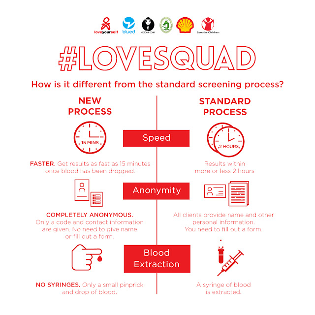 Hang out with us at #LoveSquad on November 26th, 2017, 10 am to 7 pm, at Victoria Court Malate, and experience private, secure, and accurate HIV testing in a fraction of the time—no more than 20 minutes from the time of prick ‘til you see the results on the stick! Quick, isn’t it?